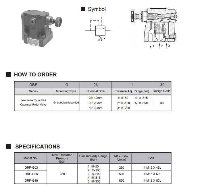 DRF La válvula de alivio operada por piloto de bajo ruido funciona comparando la fuerza hidráulica y la fuerza del muelle para controlar la presión del aceite. Se utiliza principalmente para proteger la bomba y la válvula de control de la sobrepresión, y puede mantener una presión estable en el sistema, que puede lograr el control remoto y la descarga de la válvula a través del puerto de descarga (control remoto).