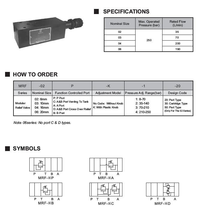 Serie MRF La válvula de alivio modular se utiliza principalmente para proteger la bomba y la válvula de control de la sobrepresión, y puede mantener una presión estable en el sistema.