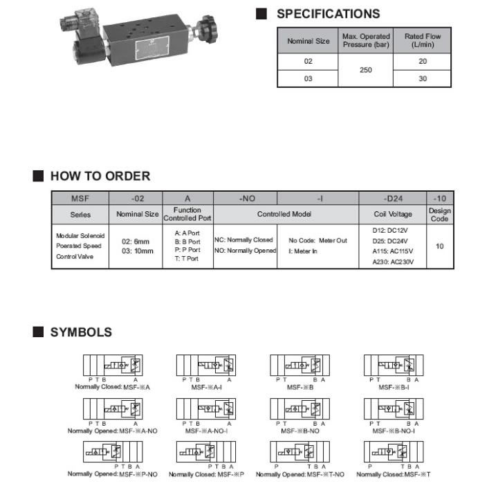La válvula moduladora de control de velocidad accionada por solenoide es una combinación de válvula de retención y válvula solenoide, que es capaz de utilizar señales eléctricas para controlar la apertura total o el estrangulamiento del circuito de aceite, para conseguir una conmutación flexible de alta y baja velocidad del actuador.