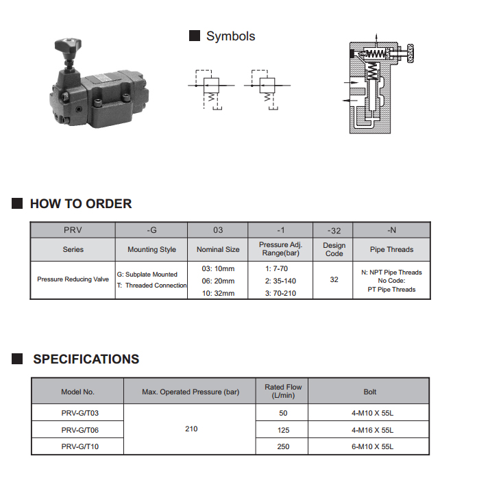 El modelo PRV que reduce la válvula de presión es una válvula de control usada para fijar la presión del circuito de ramificación más baja que la presión del circuito principal, que puede utilizar el puerto del control remoto para el control remoto. El montaje en placa y el montaje en línea están disponibles. La válvula reductora de presión en paralelo con la válvula unidireccional puede desempeñar el papel de una válvula reductora de presión unidireccional. El control remoto se puede lograr a través del puerto de control remoto.